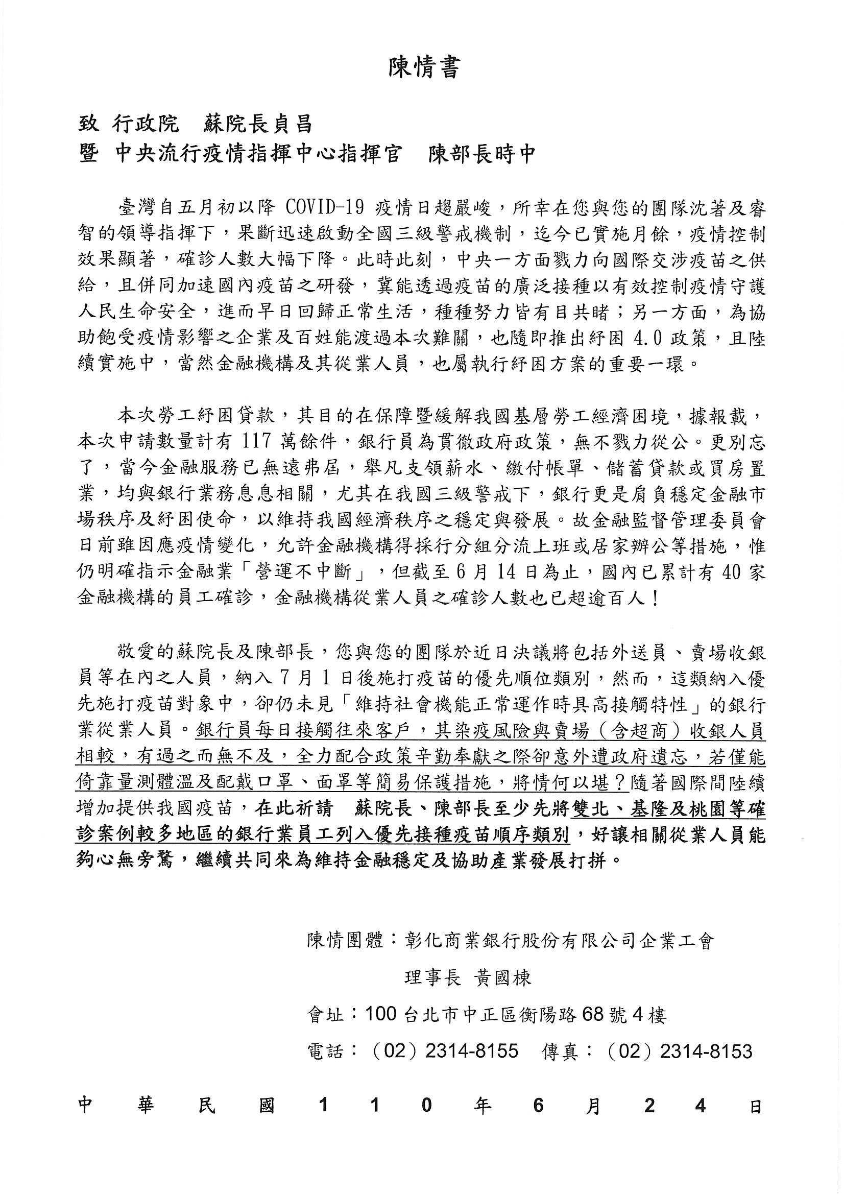彰銀工會陳情書--110.6.24