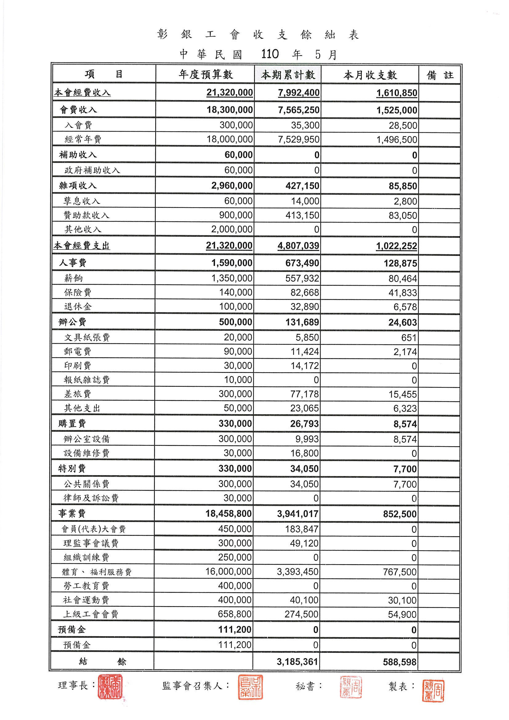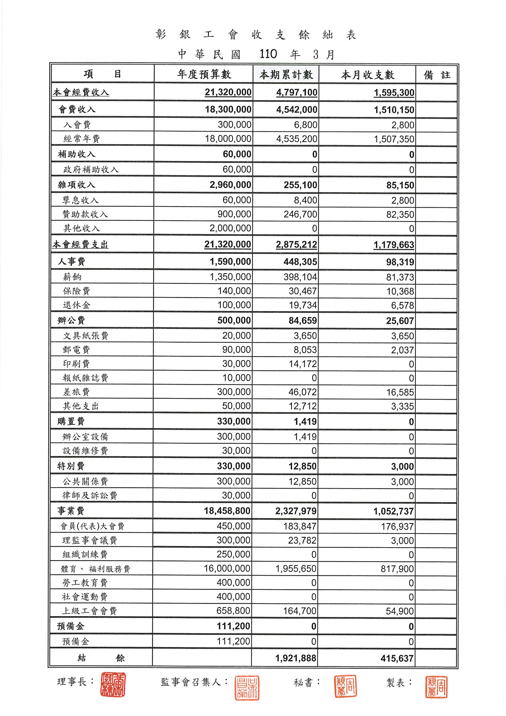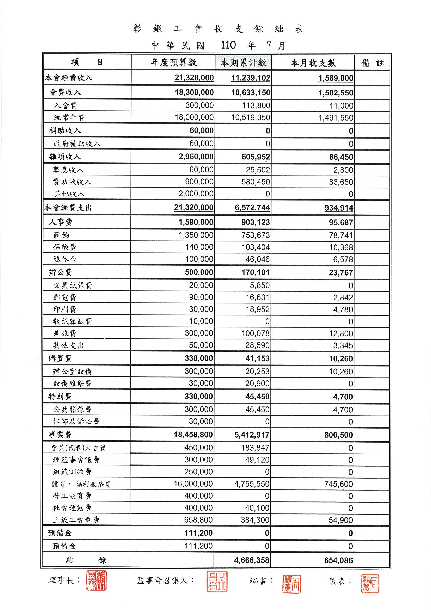 110年3月份至7月份收支餘絀表