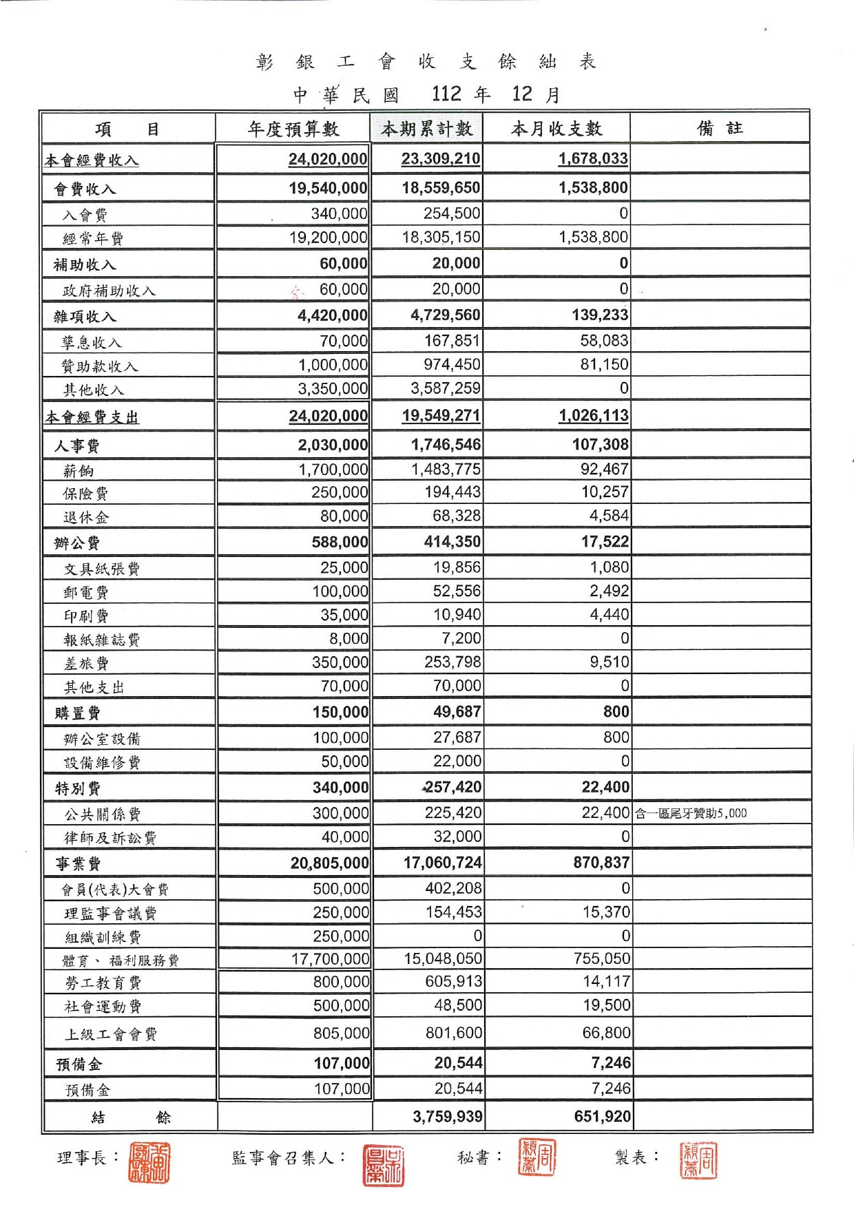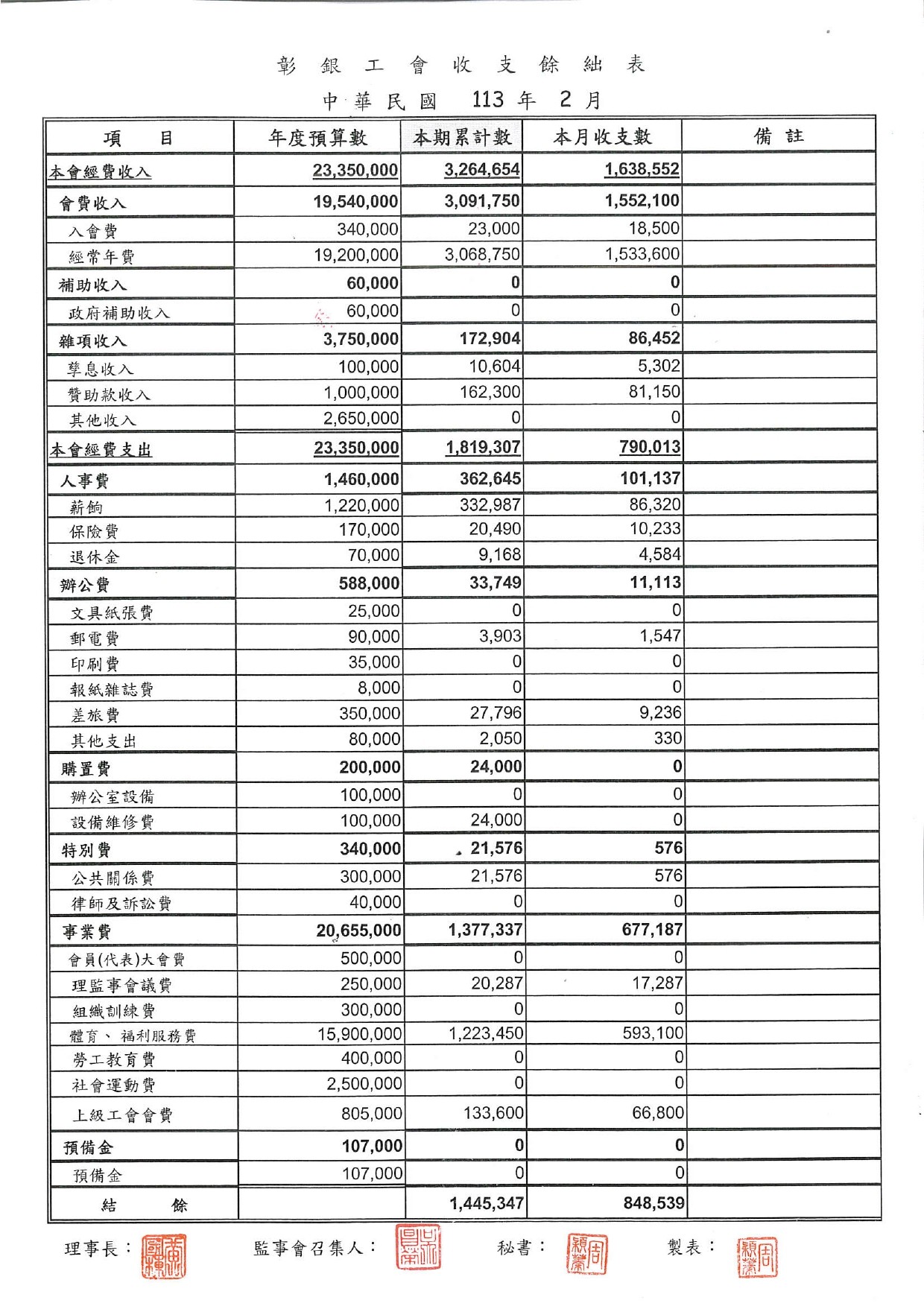 112年12月份至113年2月份收支餘絀表