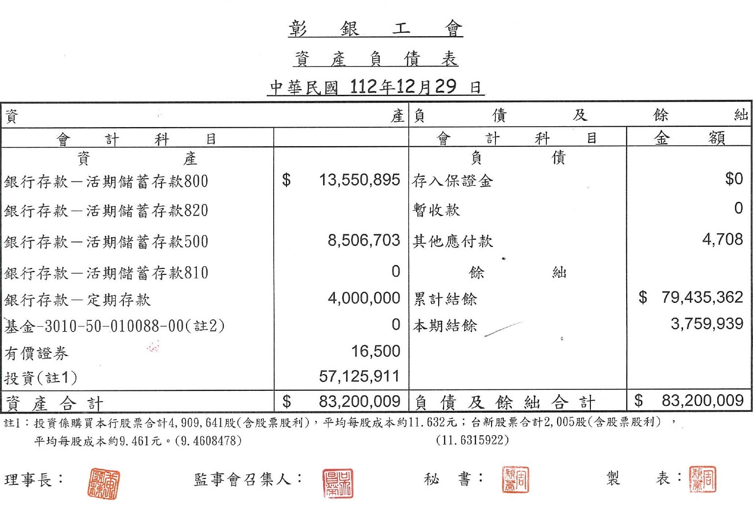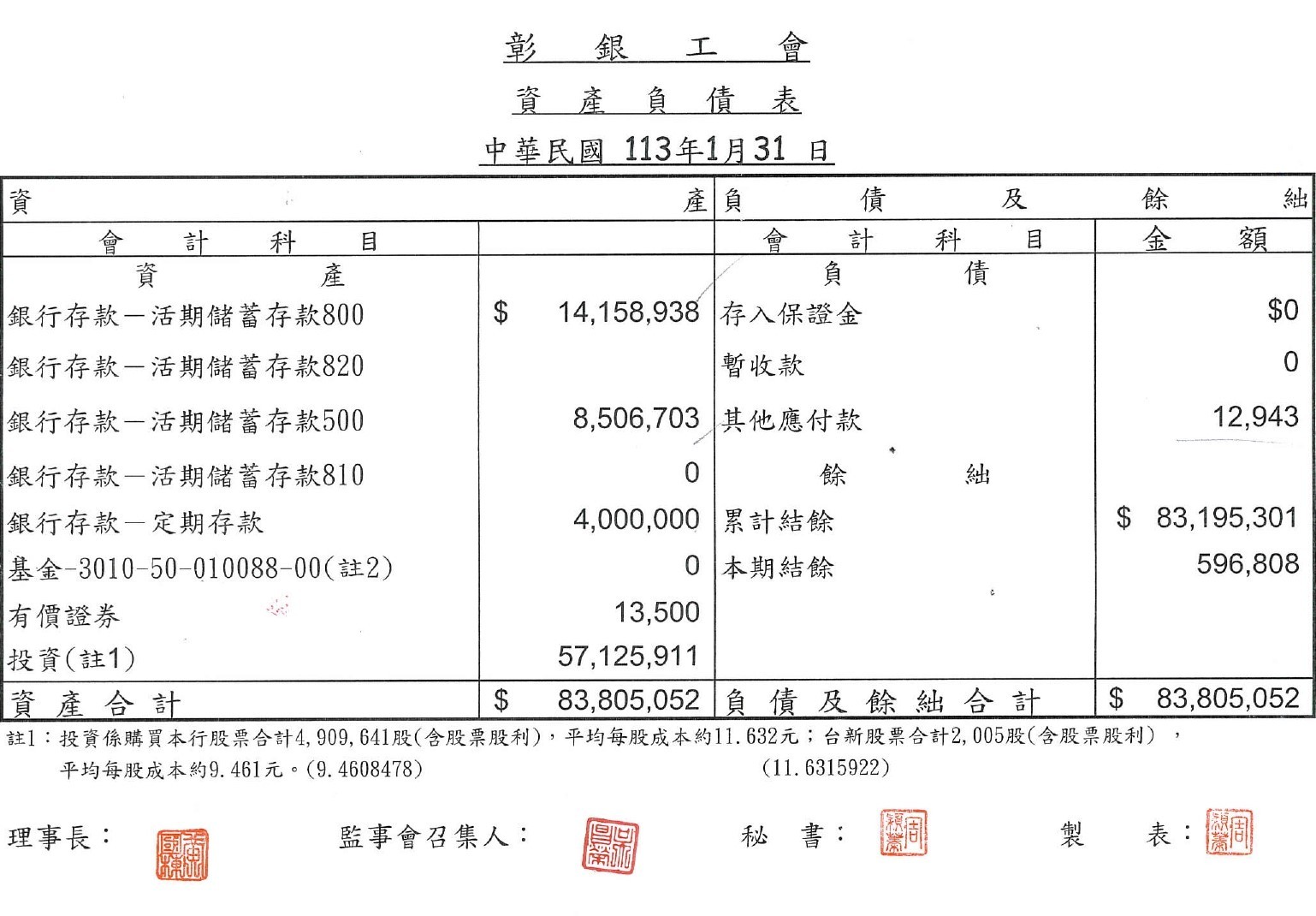 112年12月份至113年2月份資產負債表