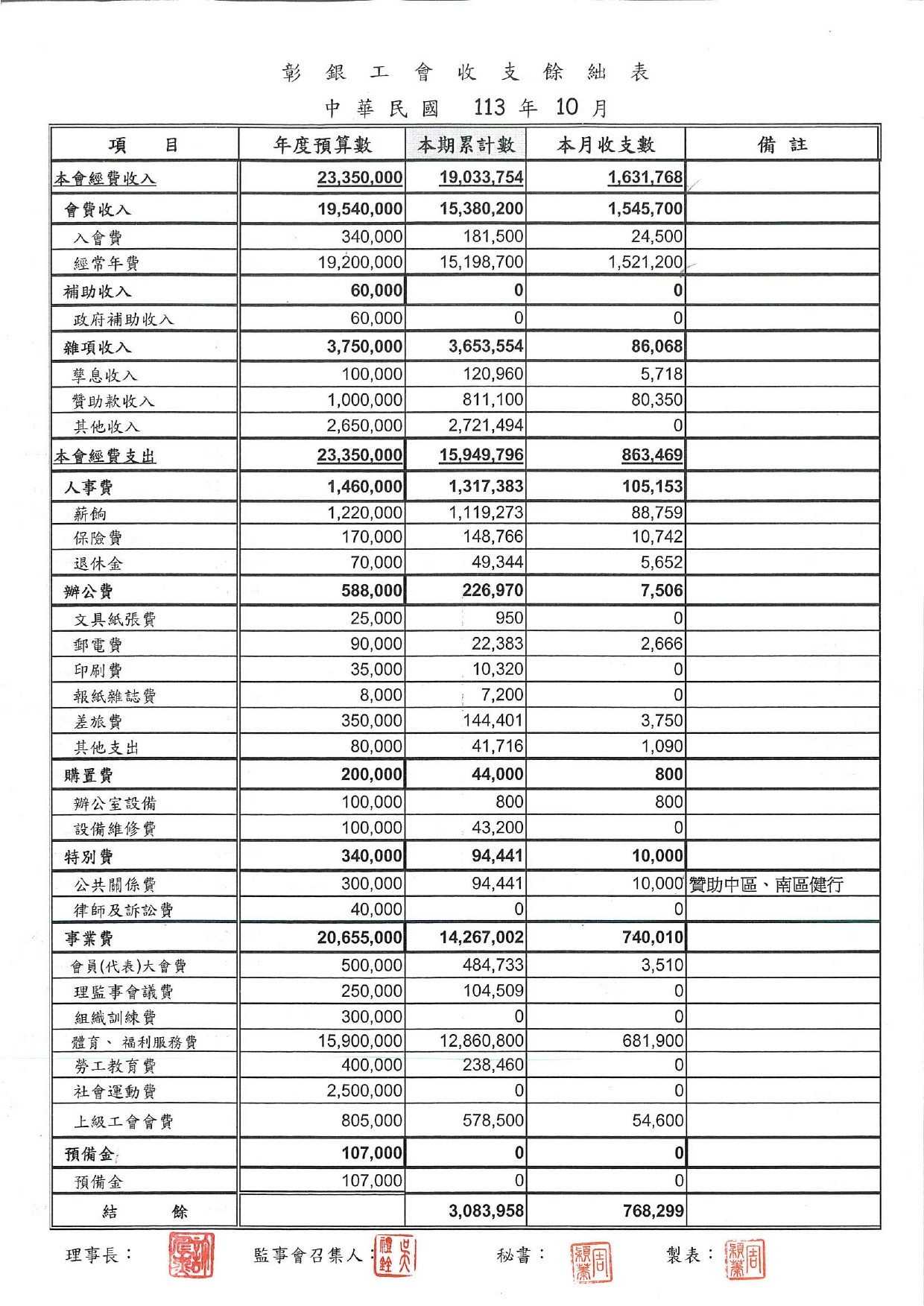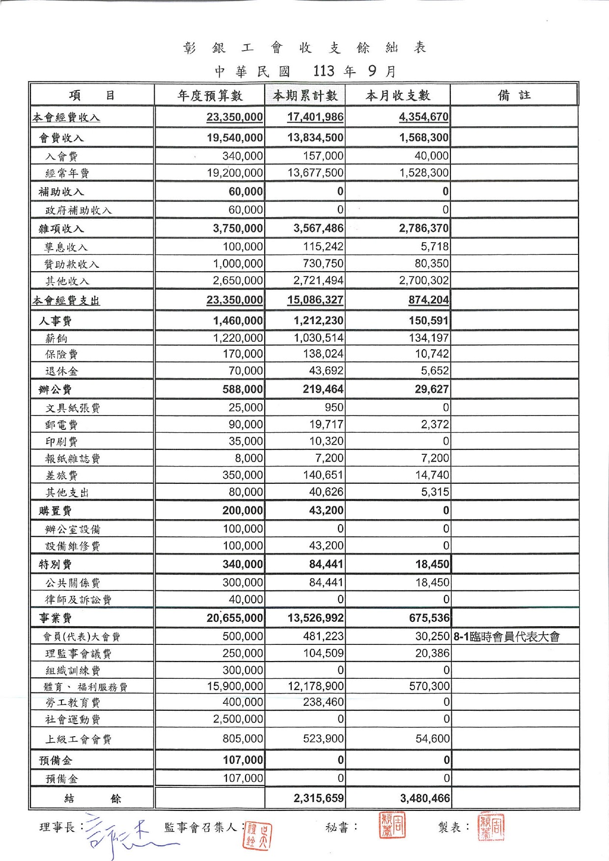113年9月份至113年11月份收支餘絀表