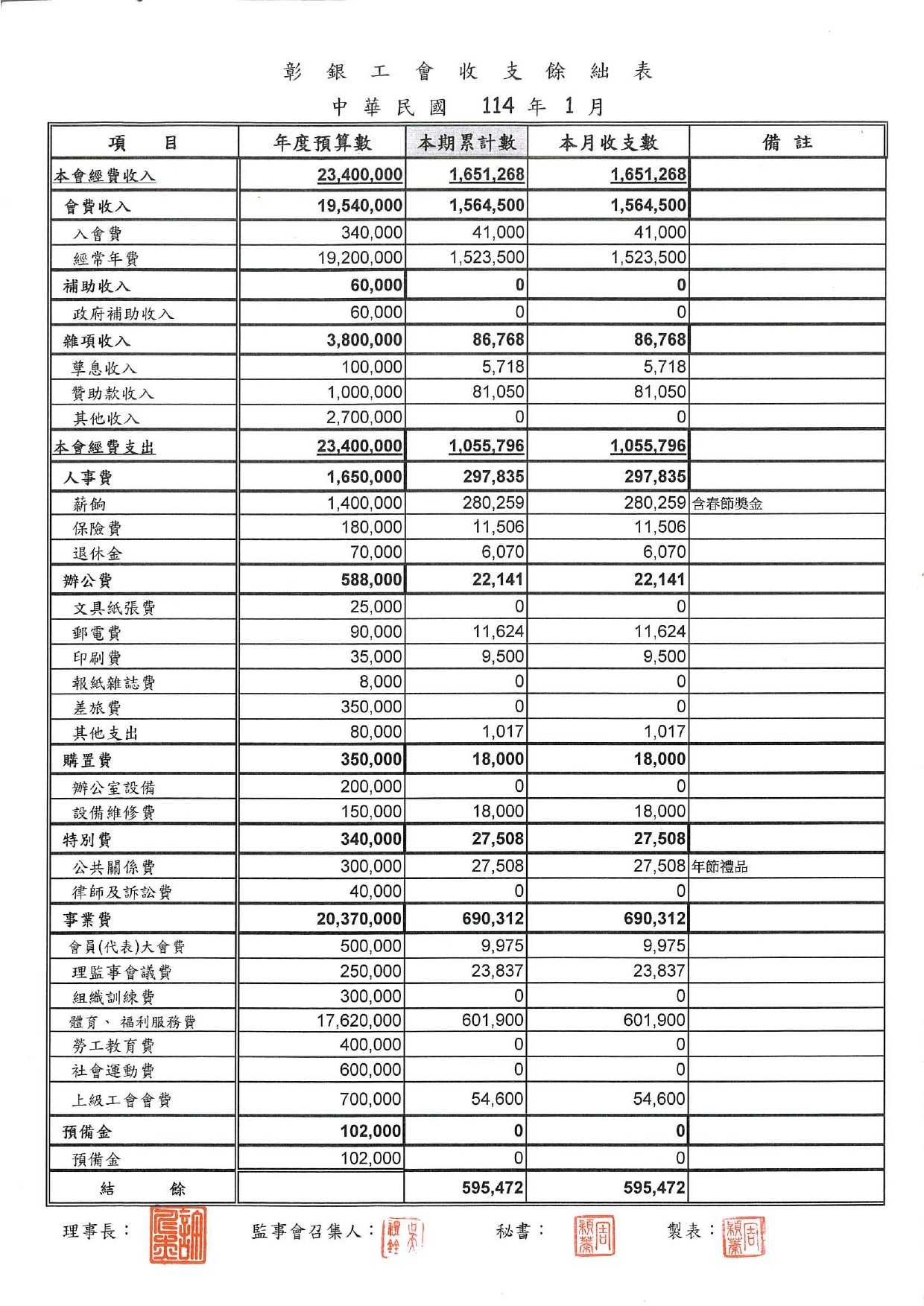 113年12月份至114年1月份收支餘絀表
