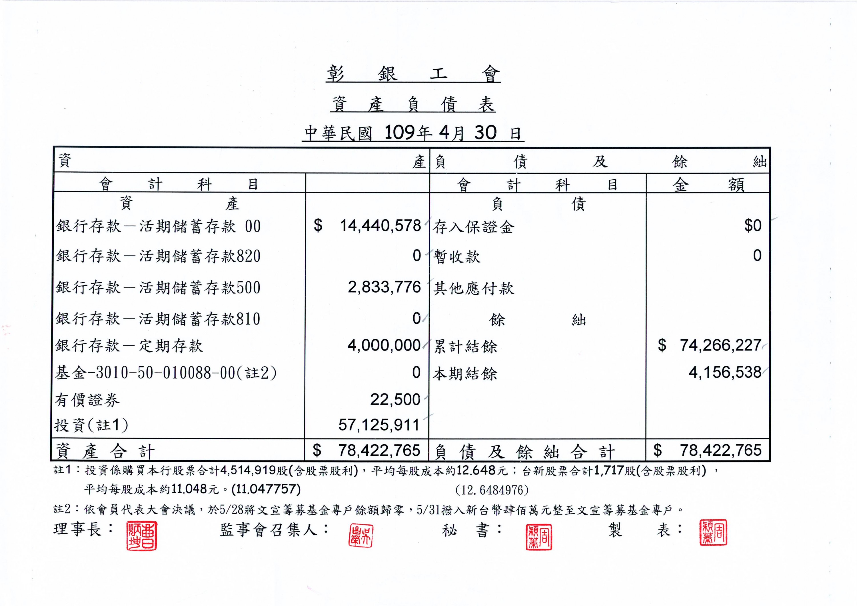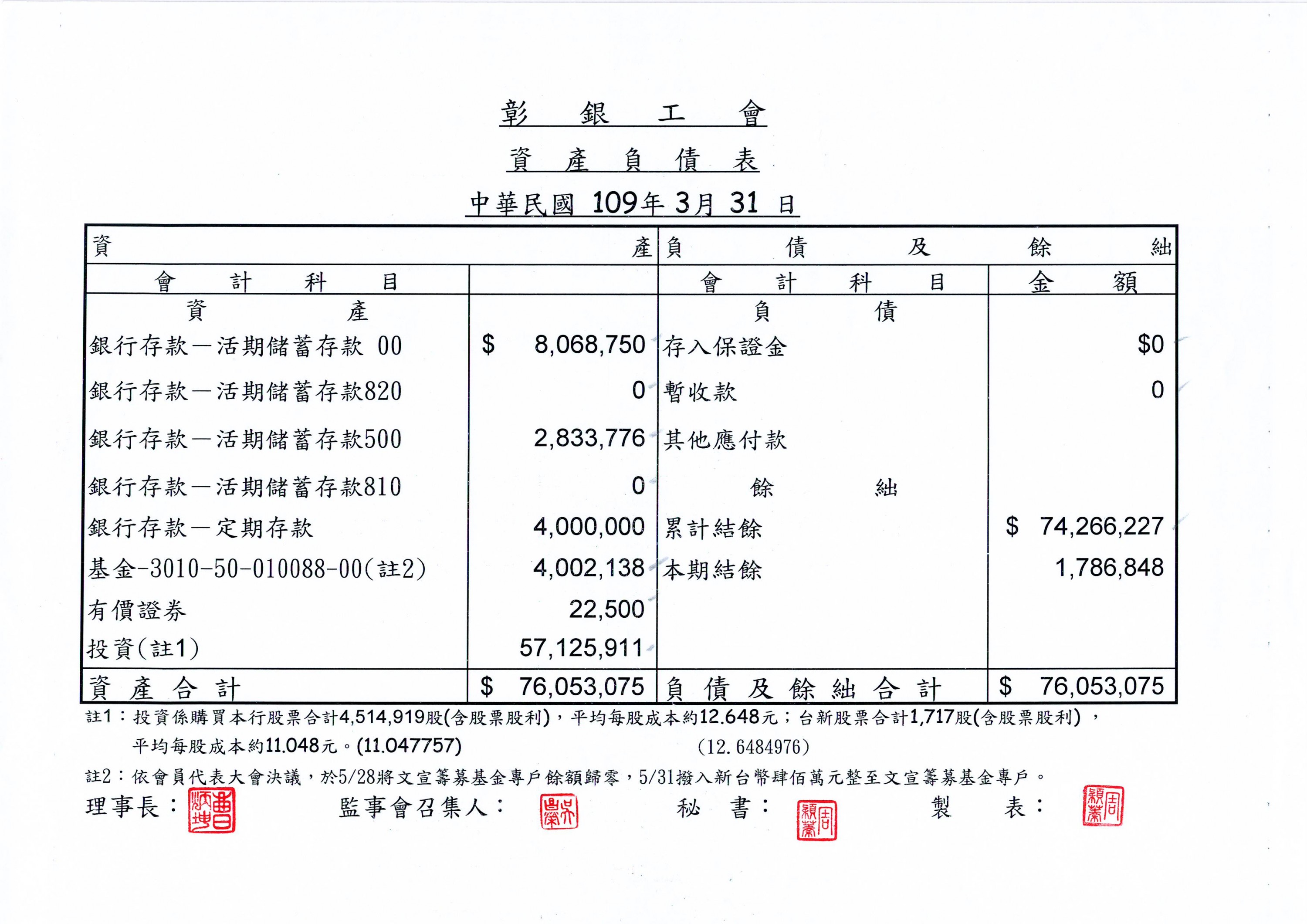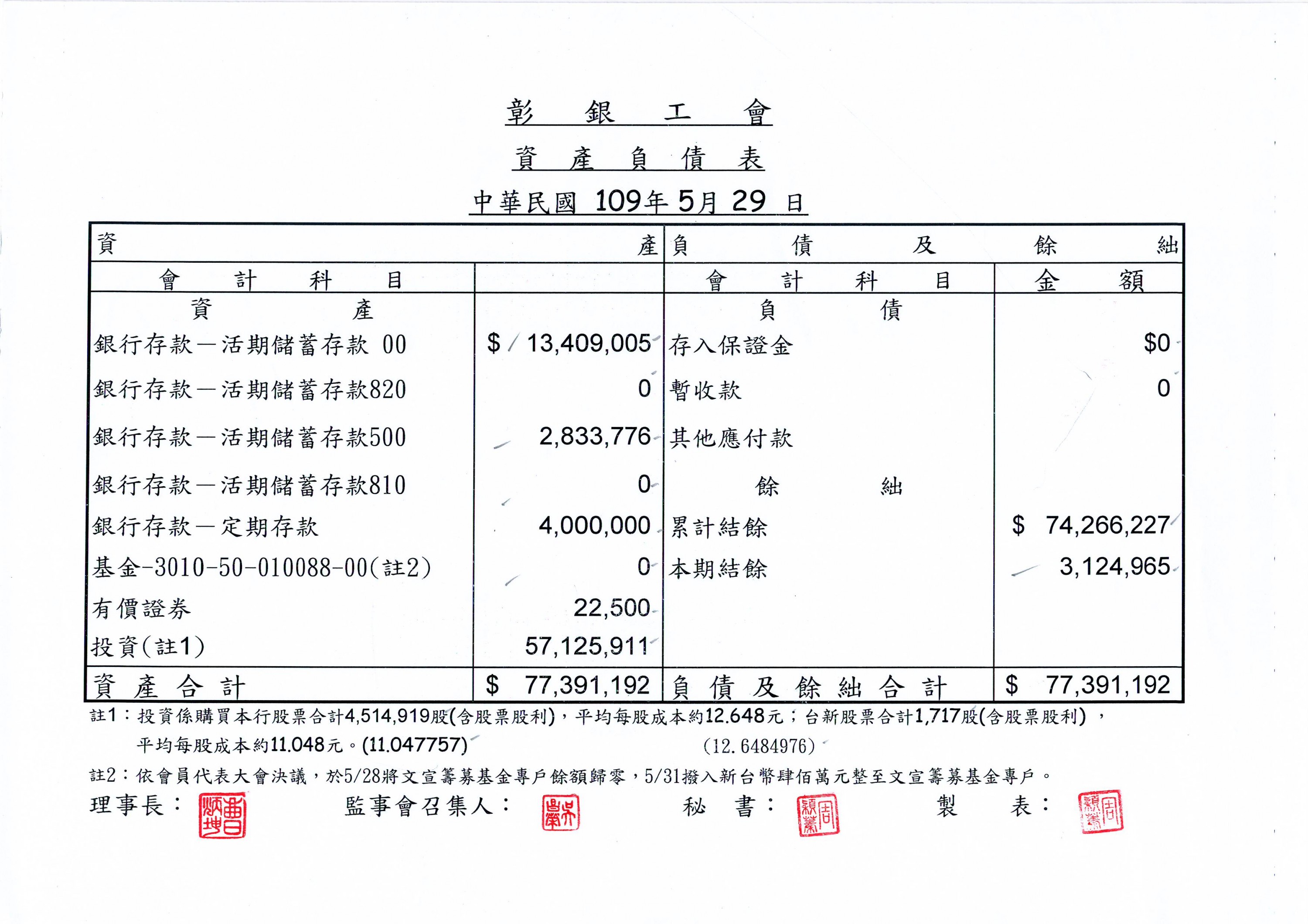 109年3、4、5月份資產負債表
